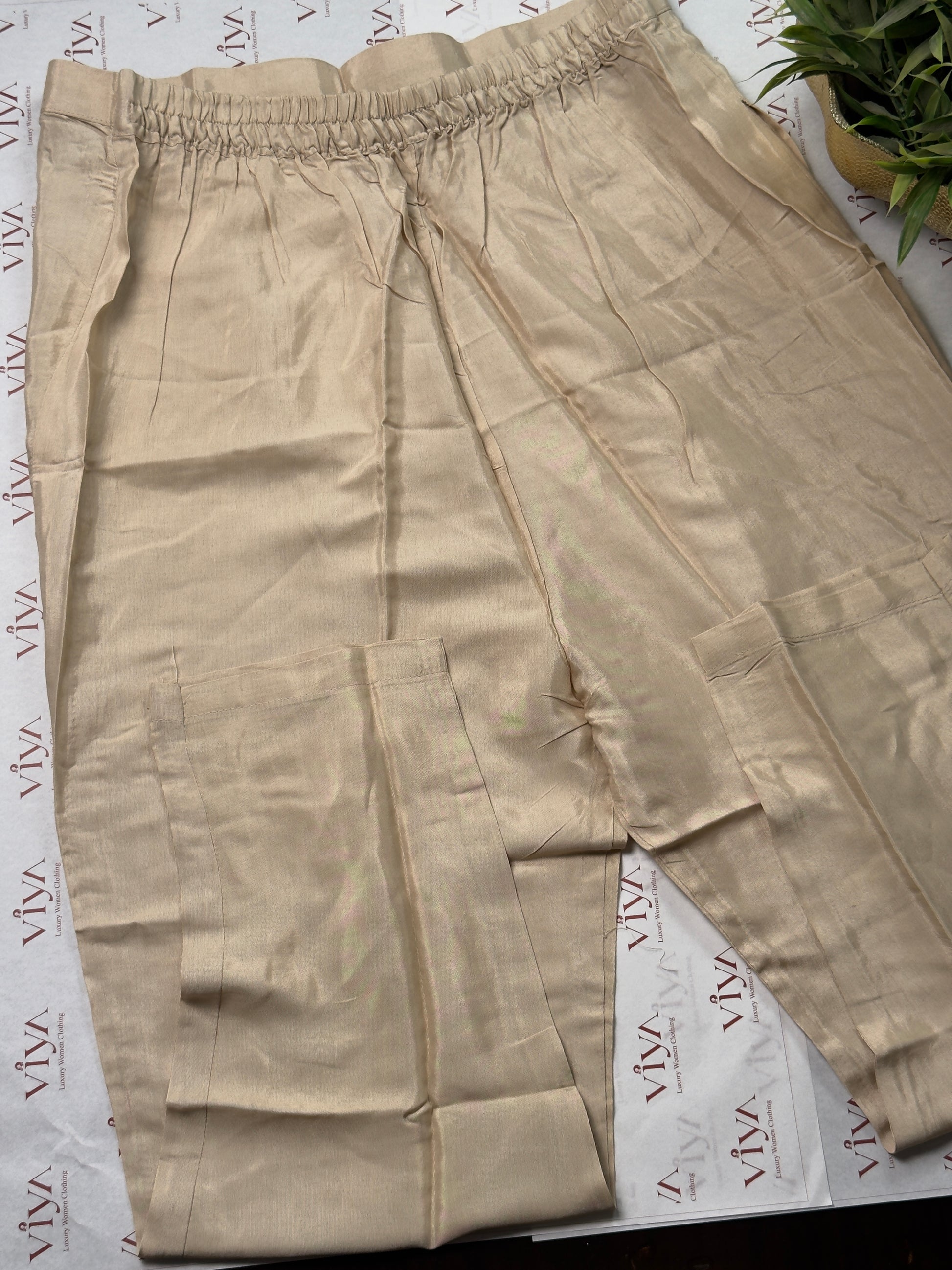Fabric: Kanjivaram Tissue Silk Work: Handwork Set: 3 Piece (Kurta, Straight Pant, Dupatta)