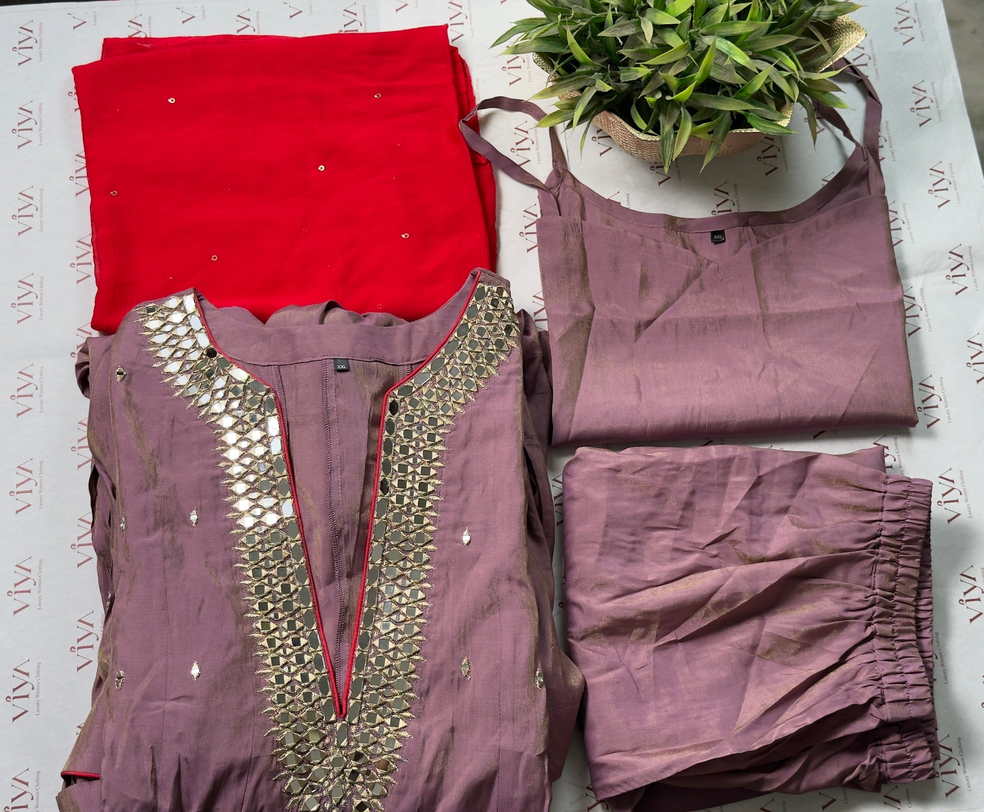 Elegant lavender pure silk Anarkali suit featuring intricate handwork on the neckline, designed with a graceful flared silhouette. Paired with a contrast dupatta and straight pants, making it a perfect choice for festive occasions, weddings, and evening celebrations.