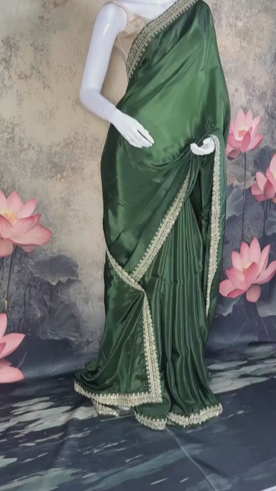 An elegant pure crepe silk saree featuring a refined Sabyasachi-inspired lace border, paired with an exclusive 1gm velvet Jamdani blouse. Crafted for luxury occasions, this ensemble blends fluid drape, rich texture, and couture-level detailing—ideal for weddings, receptions, and statement celebrations