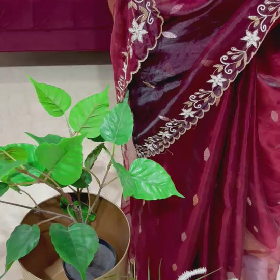 Exude timeless elegance with this Pure Banarasi Tissue Silk Saree featuring intricate Kadwa weaving and handwork. Perfect for weddings and festivals, it blends tradition, luxury, and artisanal craftsmanship beautifully.