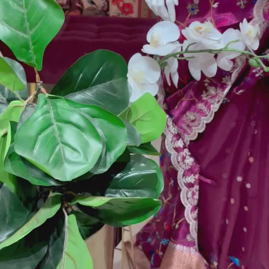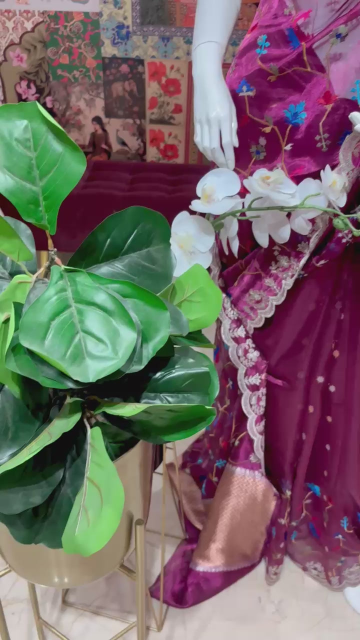 Luxurious pure tissue silk saree with exquisite Kadwa weaving and intricate Petit Point embroidery. A masterpiece of craftsmanship, perfect for weddings and grand occasions. Elegant, timeless, and rich in tradition.
